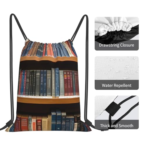 • Material Description:Library Bookshelf Print Drawstring Backpack Sack Is Made Of Polyester Which Is Durable And Withstands Daily Wear And Tear. Draw String Closure Makes You Store Things Quickly And Take Them In And Out Easily.
