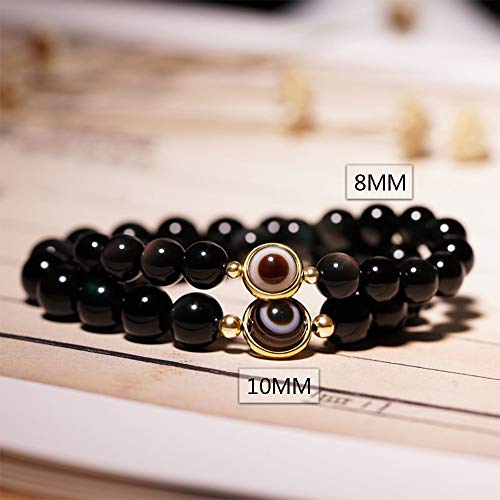 L&C Feng Shui Black Obsidian Wealth Bracelet - 8MM 10MM Women Mens Bracelets Natural Black Obsidian Crystal Evil Eye Agate Bring Luck Prosperity Elastic Stretch Beaded Bracelet for Woman Men 6