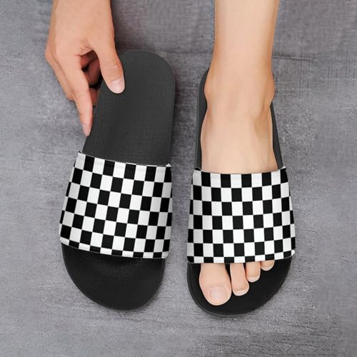 Black And White Checkerboard Womens Slide Sandals Non Slip Summer House Slippers for Girls Slip-on Flip Flops 7