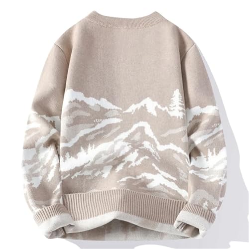 Men Retro Print Loose Fit Knit Sweater O-Neck Full Sleeve Vintage Street Style Casual Pullover Sweater 4