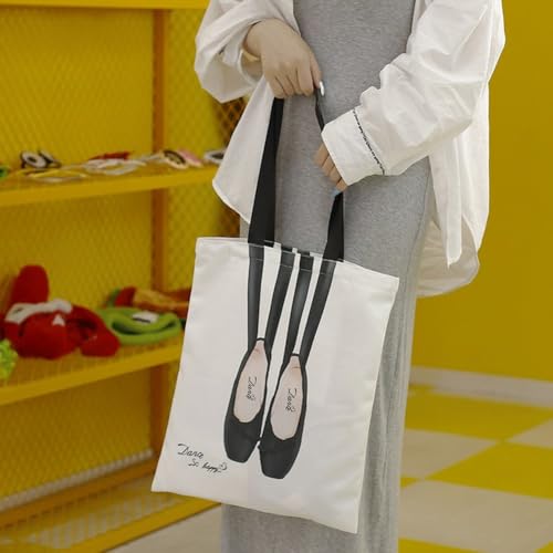 • STYLISH DESIGN: Elegant canvas tote bag featuring ballet shoe artwork and decorative text, perfect for dance enthusiasts and everyday use.