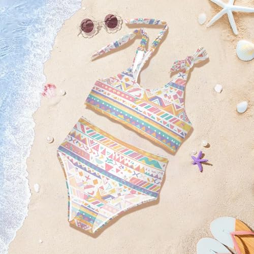 KLL Traditional Tribal Aztec Girls Two Piece Bikini Set Quick-Dry Bathing Suit Swimming Suits Adjustable Shoulder Strap 2