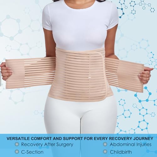 Postpartum & Post Surgery Abdominal Binder. Postpartum Belly Band Support Recovery after C-Section, Natural Birth, Hysterectomy, Hernia Belt (Beige,M)