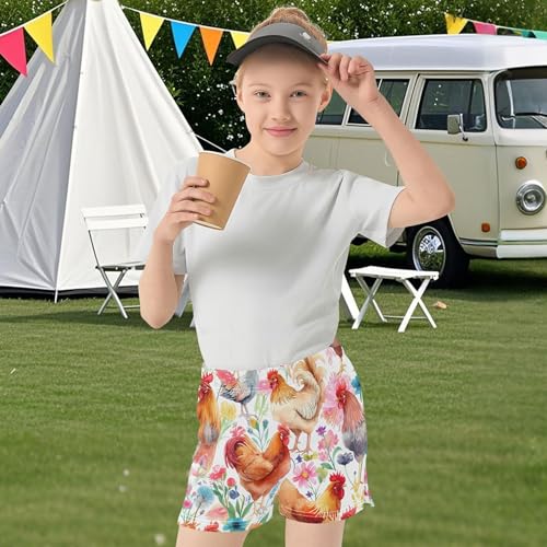 Product NameGirls Athletic Shorts Colorful Chickens Vibrant Flowers Print Comfy Summer Pajama Activewear Youth Teens, X-Small