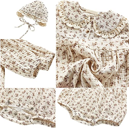 More information about Baby Girl Fall Clothes Outfits Cute Long Sleeve Ruffles Embroidered Bubble Romper Lapel Jumpsuit Bodysuit with Hat