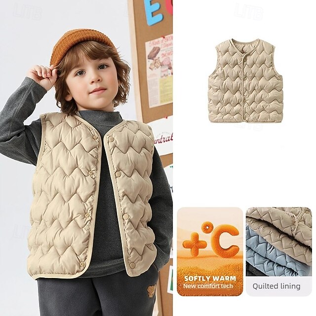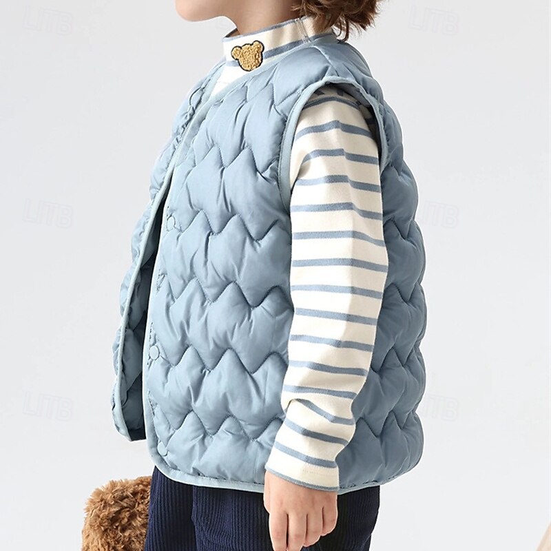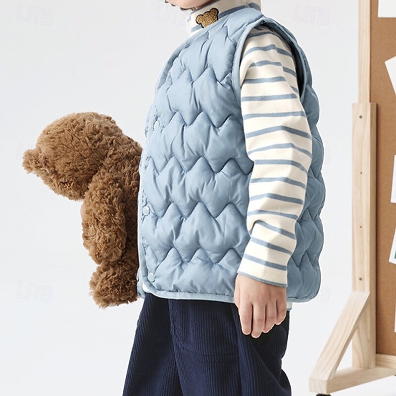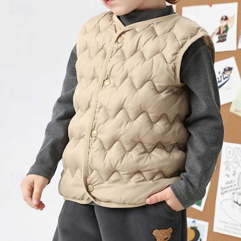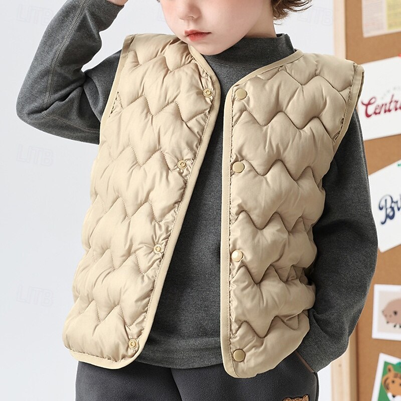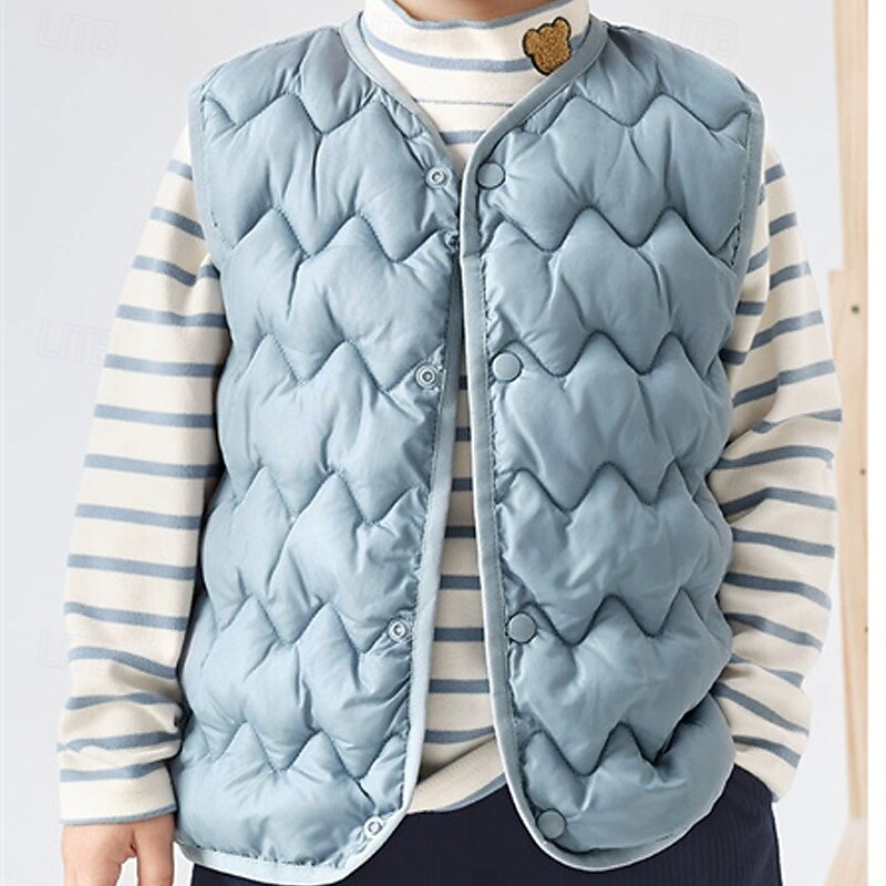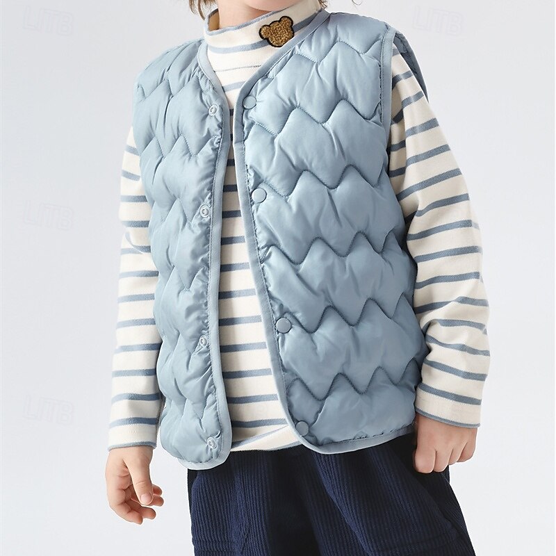 Kids Unisex Vest Coat Outerwear Solid Color Sleeveless Buttons Keep Warm Soft Breathable Coat Outdoor Fashion Daily Black Pink Blue Fall Winter 4 years+ 17