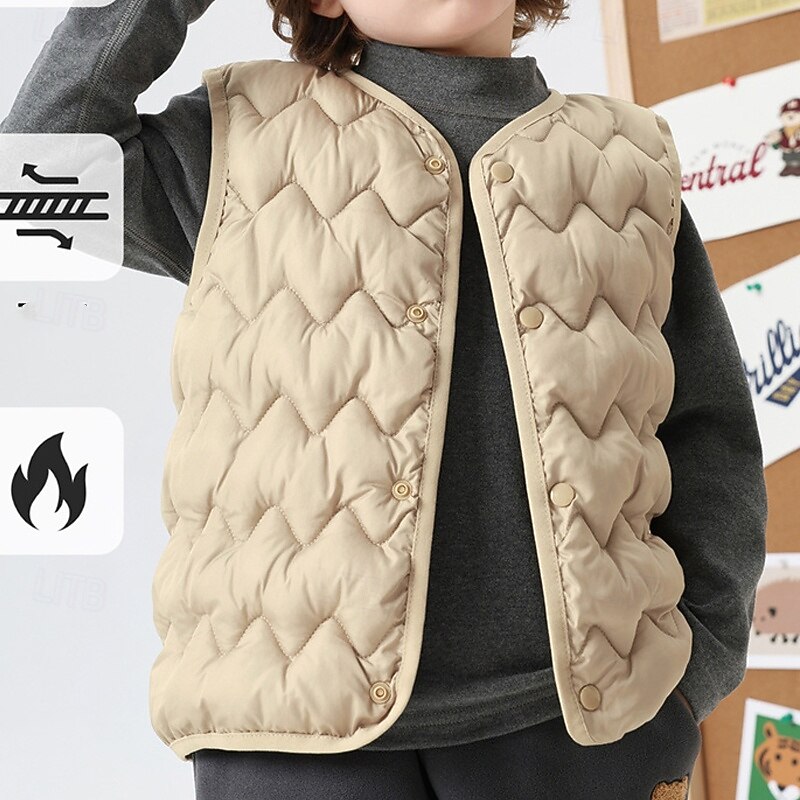 Kids Unisex Vest Coat Outerwear Solid Color Sleeveless Buttons Keep Warm Soft Breathable Coat Outdoor Fashion Daily Black Pink Blue Fall Winter 4 years+ 11