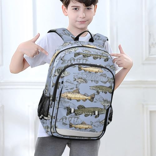 River Fish Backpack for Girls-Boys Middle-School Elementary Bookbags Large Toddler School Bags