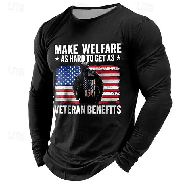 More information about Veterans Day Men's Patriot Patriotic Veteran American US Flag Patriotic T shirt Long Sleeve T shirt 3D Print Crew Neck Shirt Casual Street Casual Daily Black Green Gray Summer Spring Fall Clothing