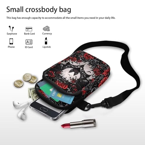HOT ! Gothic Small Crossbody Bag for Women Lightweight Cell Phone Purse, Bloody Rose Shoulder Wallet with Zipper Pocket