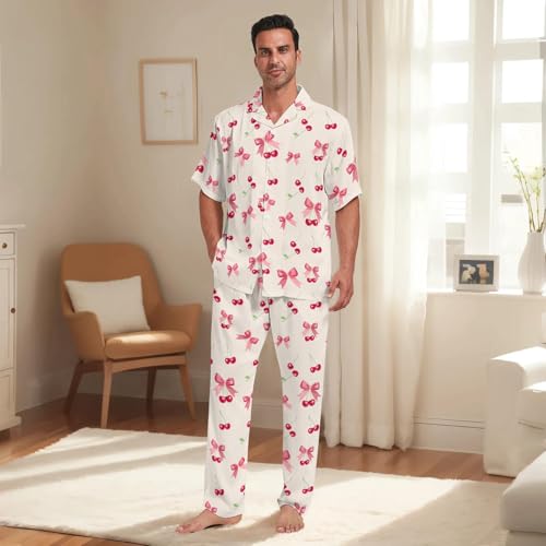 Men's Pajama Sets 2PCS Short Sleeve Pajamas Sets Button Down Loungewear Set silky Sleepwear Pjs
