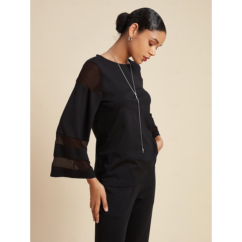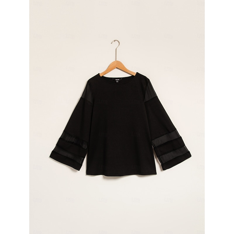 Women's Casual Style Chiffon Modal Solid / Plain Color Daily Wear Date Going out Illusion Sleeve Black Crewneck Pure Color Loose Long Sleeve Elegant Casual Daily Crew Neck Spring & Summer