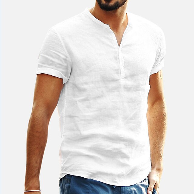 Men's Hiking Tee shirt Hiking Shirt Henley Shirt V Neck Top Outdoor Breathable Quick Dry Lightweight Comfortable Summer Spring Cotton And Linen Light Blue Black White Fishing Climbing Beach 10