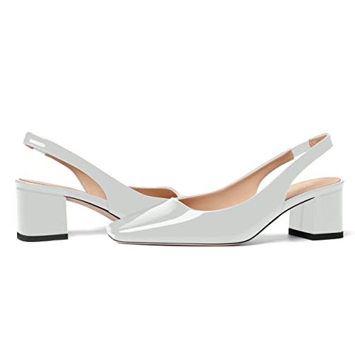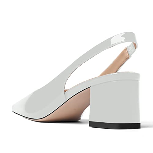 FOGEENA Womens Square Toe Patent Party Solid Dress Slip On Chunky Leather Low Heel Pumps Shoes 2 Inch 5