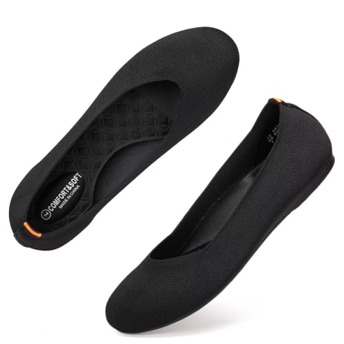 Frank Mully Women's Ballet Flats Round Toe Walking Flats Slip On Work Shoes Knitted Flats Shoes for Woman Soft Lightweight 5