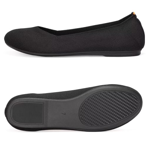Frank Mully Women's Ballet Flats Round Toe Walking Flats Slip On Work Shoes Knitted Flats Shoes for Woman Soft Lightweight 7