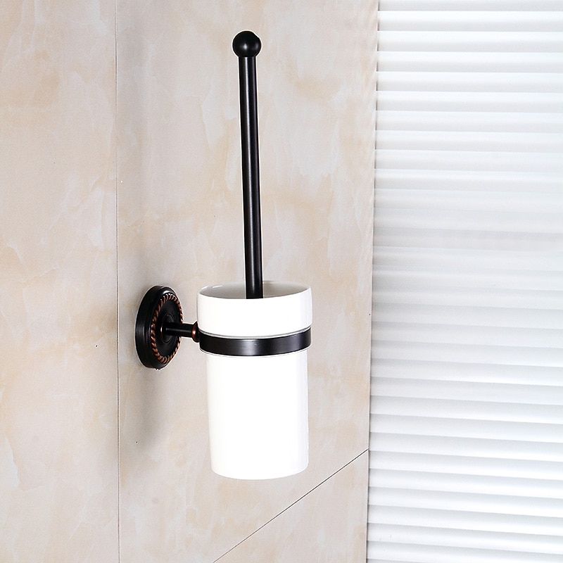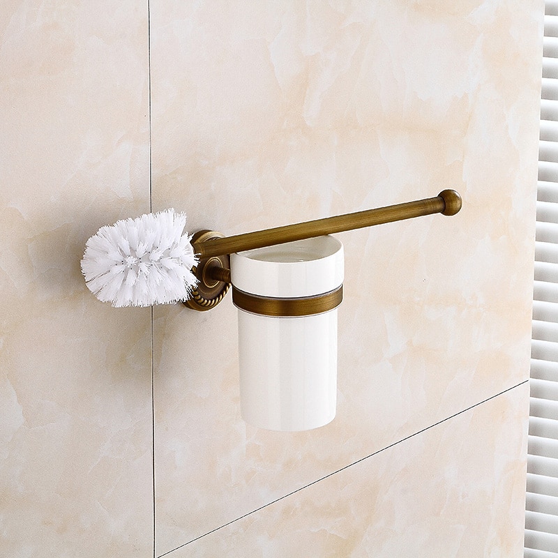 HOT ! Toilet Brush with Holder,Antique Brass Wall Mounted Rubber Painted Toilet Bowl Brush and Holder for Bathroom