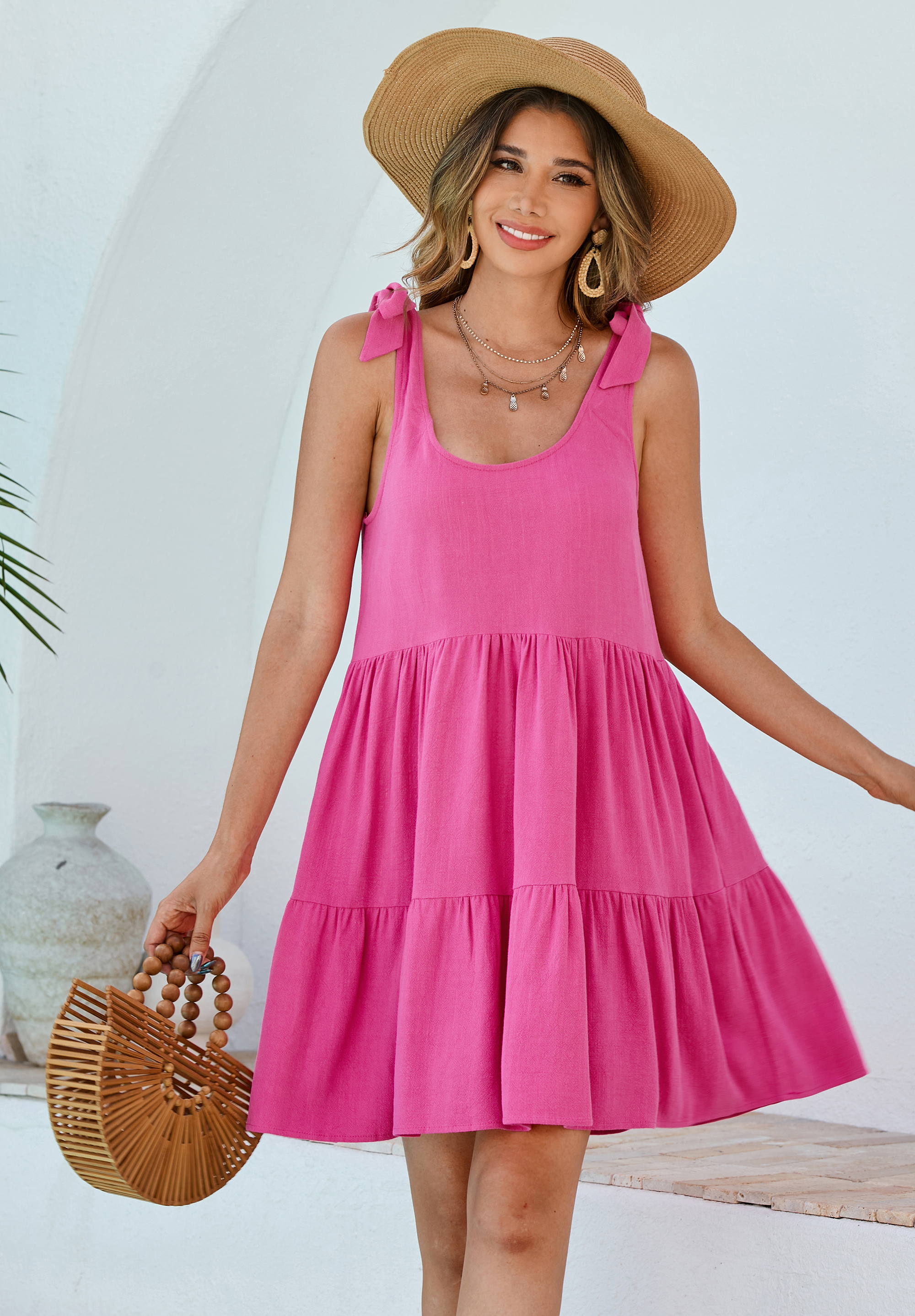 R.Vivimos Womens Summer Casual Cotton Linen Mini Dress 2025 Adjustable Straps Sleeveless Loose Flowy Beach Dress with Pockets 9