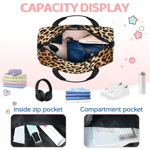 Travel Duffel Bag Sports Gym Bags for Women Men Camp Bag Wet Dry Pockets Cheerleading Dance Pack For Girls Weekender Overnight Tote Airline Leopard Design 6