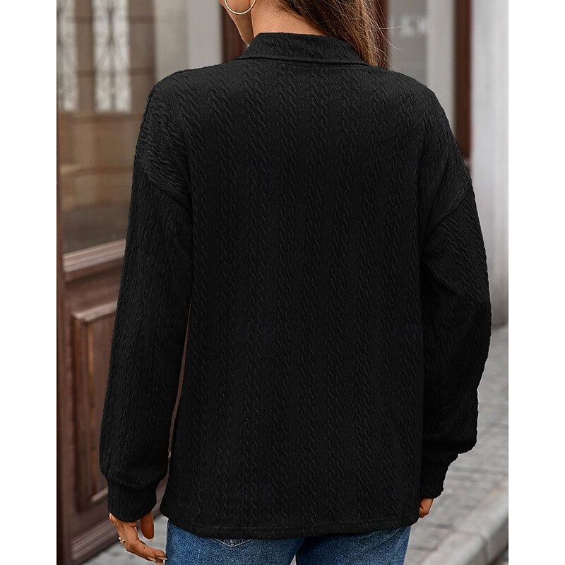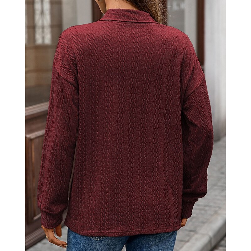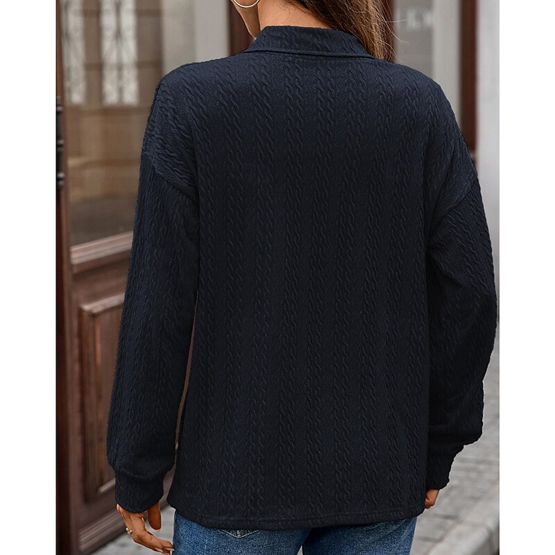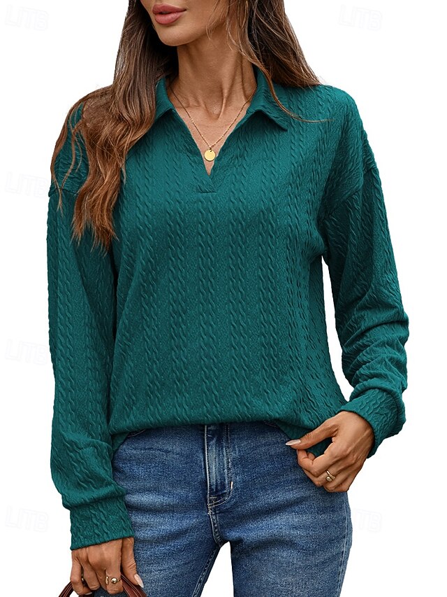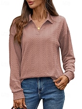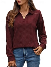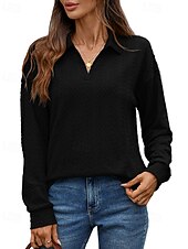 More information about Women's Texture Blouse Pullover Sweatshirt Sweatshirts Plain Streetwear Casual Long Sleeve V Neck Regular Tops Street Holiday Going out Denim Blue Black Pink Wine Fall