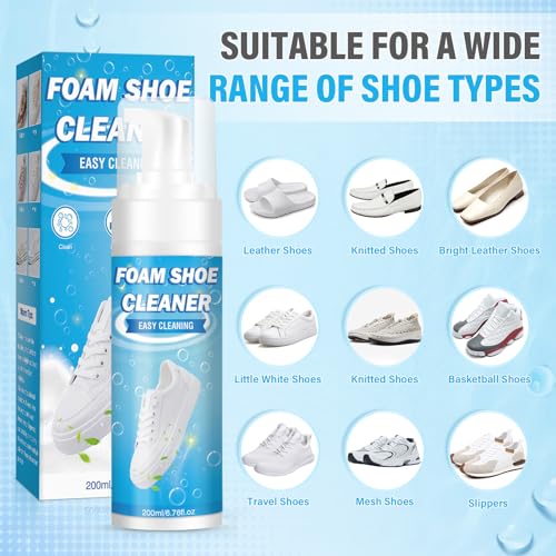 • SUITABLE FOR ALL KINDS OF SHOES: Foam cleaner is suitable for shoes of all colors and materials, no matter your shoes are patent leather, PU leather, plastic, rubber, canvas or any other material, best white sneaker cleaner can effectively remove dirt and grease and keep your shoes in the best condition