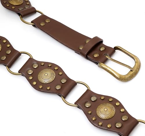 Western Belts for Women Vintage Rivet Leather Belts Cowgirl Punk Waist Belt for Skirts Jeans Dress 4