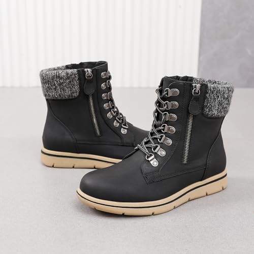 Luoika Women's Wide Width Ankle Boots, Flat Heel Side Zipper Lace Up Plus Size Short Booties. 5