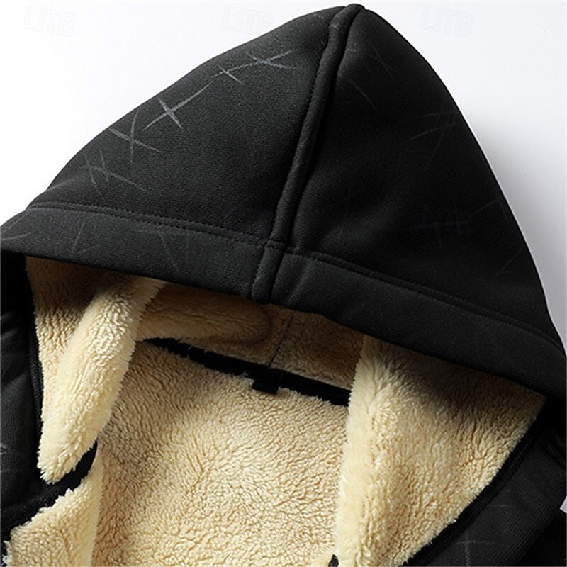 Men's Winter Jacket Fleece Jacket Padded Hoodie Jacket Zip Up Pocket Polyster Fleece lined Vacation Daily Wear Date Regular Fashion Casual snug Thermal heated Fall & Winter Solid / Plain Color