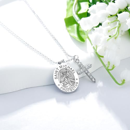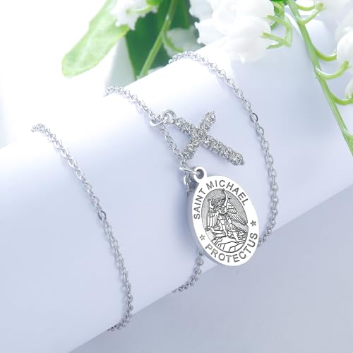 PARTNER Protectional Cross Necklace for Women MenSt Michael/Archangel Raphael/St Christopher/St Jude/St Joseph/St Anthony Medal Necklace Gifts for Women Men 2
