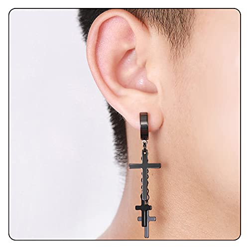 Punk Cross Drop Dangle Earrings Huggie Hinged Hoop Earrings,2PCS 1
