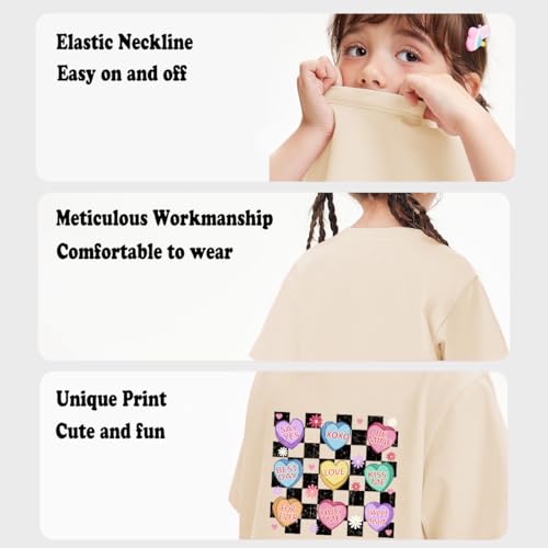 • 【Unique Printing Design】Printed with Valentine's Day themed words such as "All You Need is Love", "" and "Love Love Love", injecting the atmosphere of love and romance into the clothing. At the same time, the unique apricot color scheme and exquisite print design make this T-shirt more eye-catching, allowing children to become the most dazzling presence in the crowd.