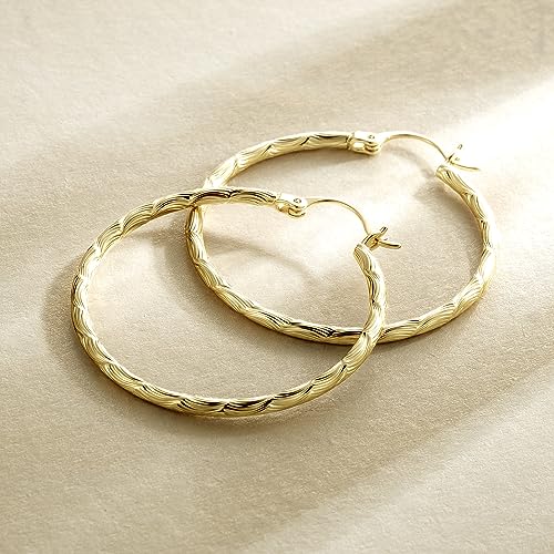 14K Gold Hoop Earrings - Large Hoop Earrings for Women - Hypoallergenic Gold Jewelry (35mm*2mm) 6