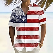 More information about Independence Day Men's American US Flag Patriotic Fourth of July Shirt Summer Shirt Button Up Shirt Short Sleeve Fashion Casual Outdoor Vacation Dailywear Summer Turndown 3D Print Linen Like Shirt