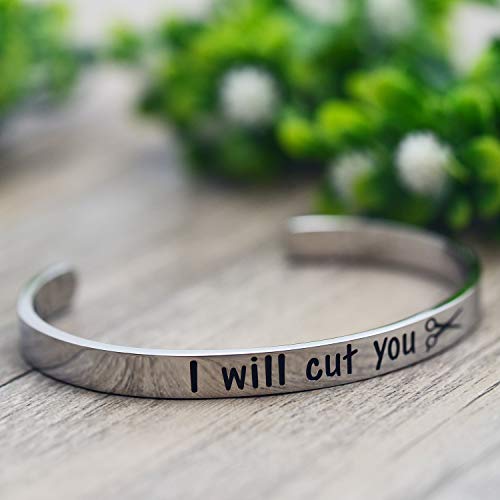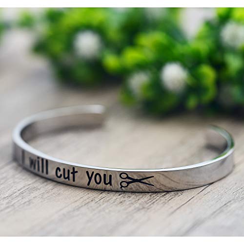 • ✔COSMETOLOGY GRADUATION GIFT - This “I Will Cut You” engraved bracelet is the perfect hair stylist gift, or cosmetology graduation gift!