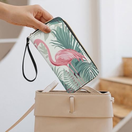 • Handheld design: The Cartoon Flamingo Leaves wallet for women comes with a rope carrying design, making it easy to carry and hold. Womens slim wallet is lightweight to hold on your hand and fits your backpack, crossbody wallet or pocket.