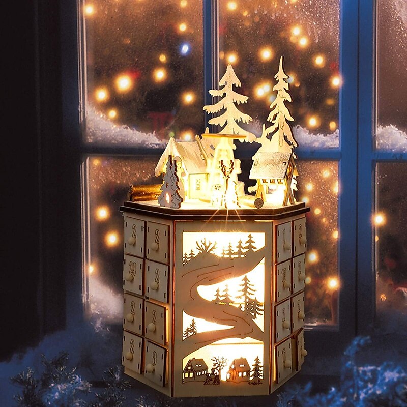 $43.99 - Christmas Advent Calendar, LED Revolving Music Box Advent Calendar Decorated with Christmas Tree Reindeer House LED Lights, Lighted Wooden Carved 24 Day Countdown to Christmas Calendar, 24 Storage Dra 2025. Shop for cheap Advent Calendar online? Buy at lightinthebox.com on sale today!