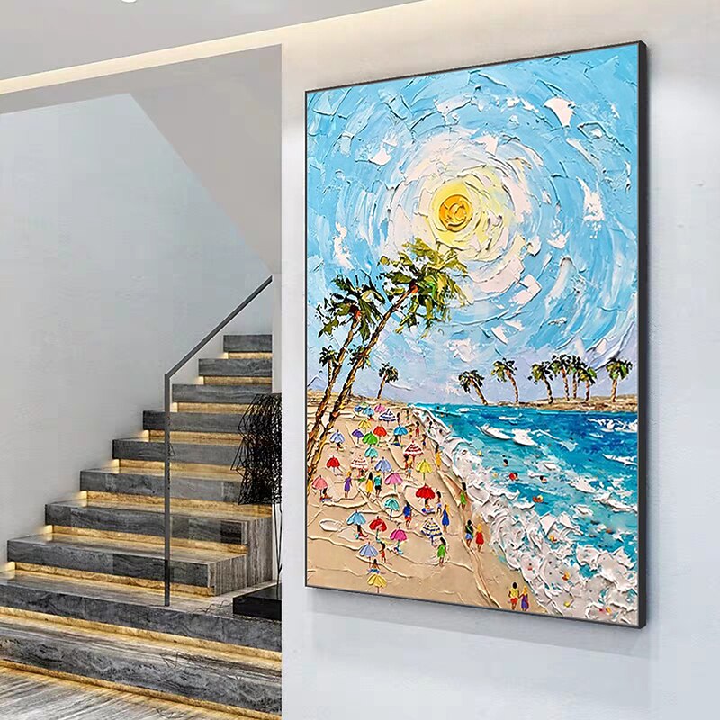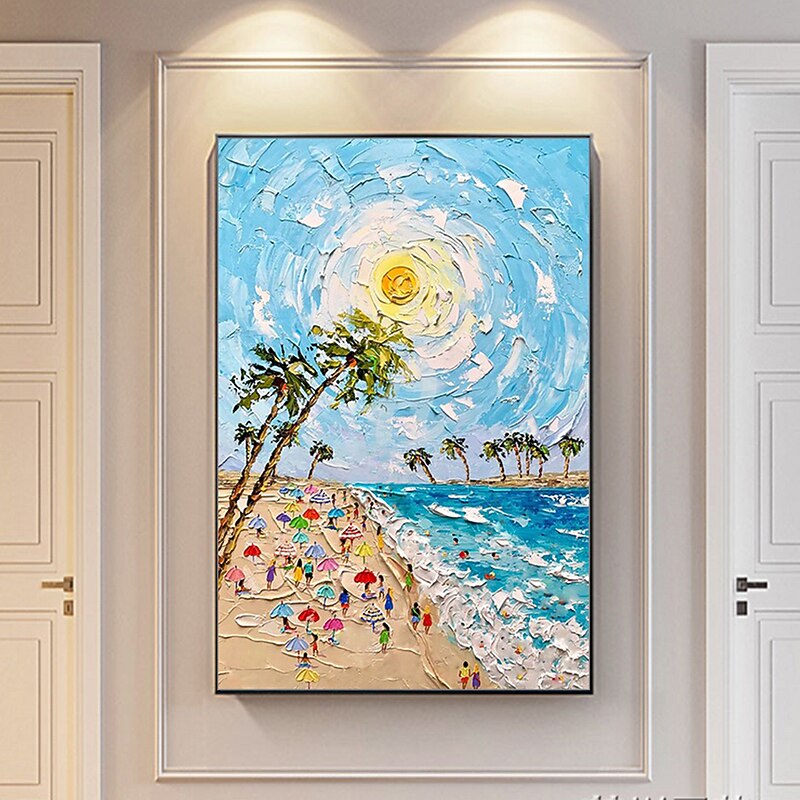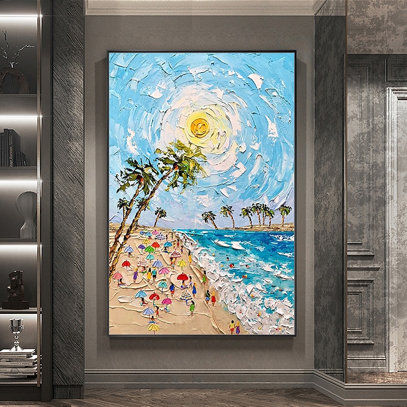 More information about Mintura Handmade Beach Landscape Oil Paintings On Canvas Wall Art Decoration Modern Abstract Thick Texture Pictures For Home Decor Rolled Frameless Unstretched Painting