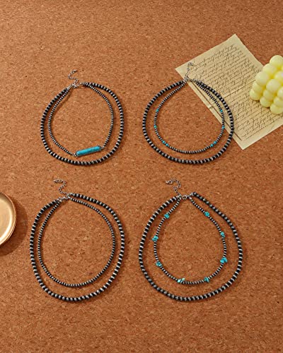 CASDAN 4 PCS Western Jewelry Navajo Pearl Layered Necklace for Women Cowgirl Country Vintage Beaded Necklace Bohemian Turquoise Choker Jewelry 3