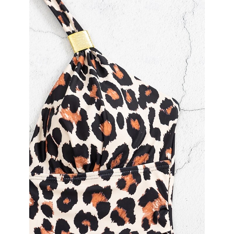 More information about Women's Swimsuits One Piece Monokini Swimsuit Backless Tummy Control High Waist Slim Vacation Beach Wear Solid Color Leopard Halter Neck Sleeveless Bathing Suits