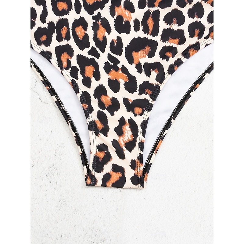 Women's Swimsuits One Piece Monokini Swimsuit Backless Tummy Control High Waist Slim Vacation Beach Wear Solid Color Leopard Halter Neck Sleeveless Bathing Suits 3
