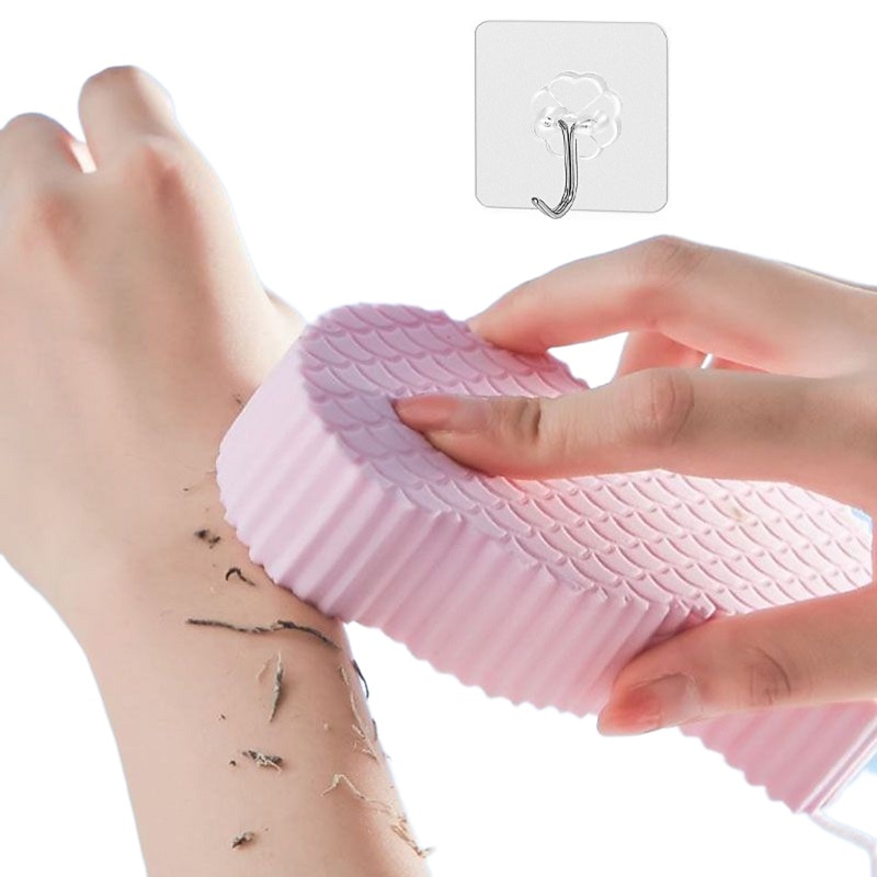 Bath Body Shower Sponge Scrub with Self-adhesive Hook Spa Scrub Exfoliator Dead Skin Remover for Adults Children Elasticity Reusable Shower Brush Skin Cleaner