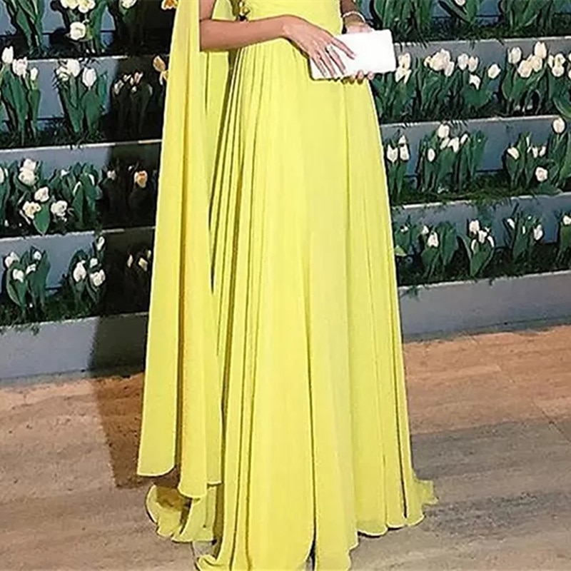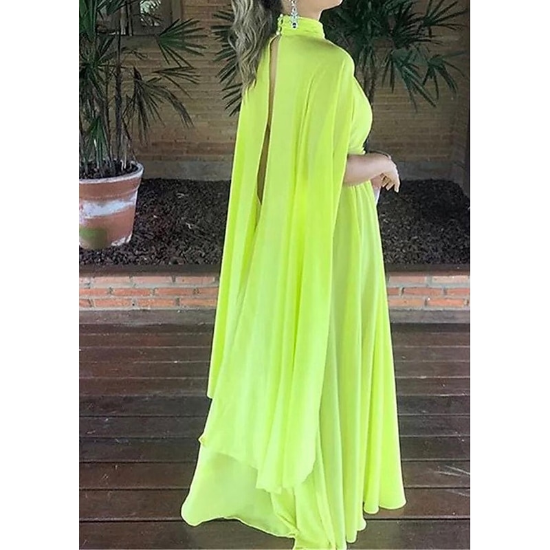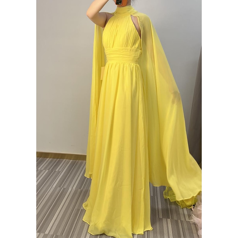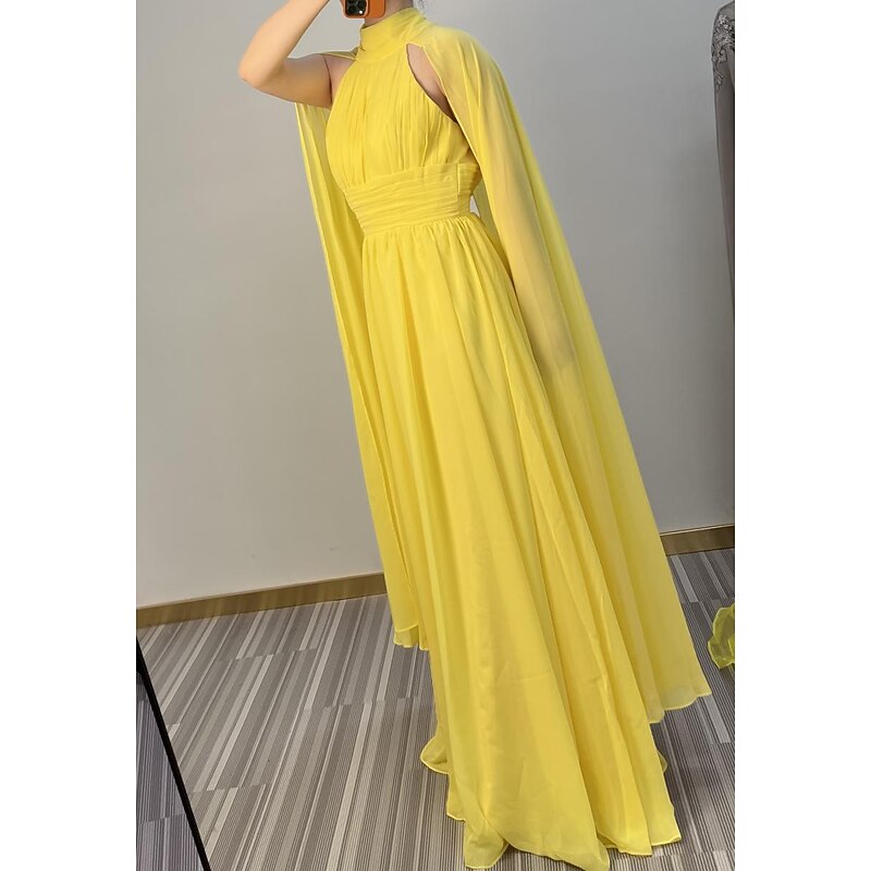 More information about Beach Wedding A-Line Evening Gown Elegant Dress Formal Wedding Guest Floor Length Sleeveless High Neck Capes Chiffon with Ruched