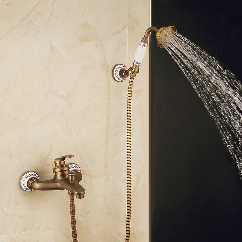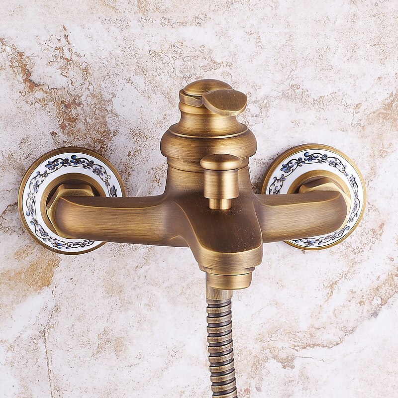 Shower Faucet / Rainfall Shower Head System Set - Handshower Included pullout Vintage Style / Country Antique Brass / Electroplated Mount Outside Ceramic Valve Bath Shower Mixer Taps / Single Handle 10