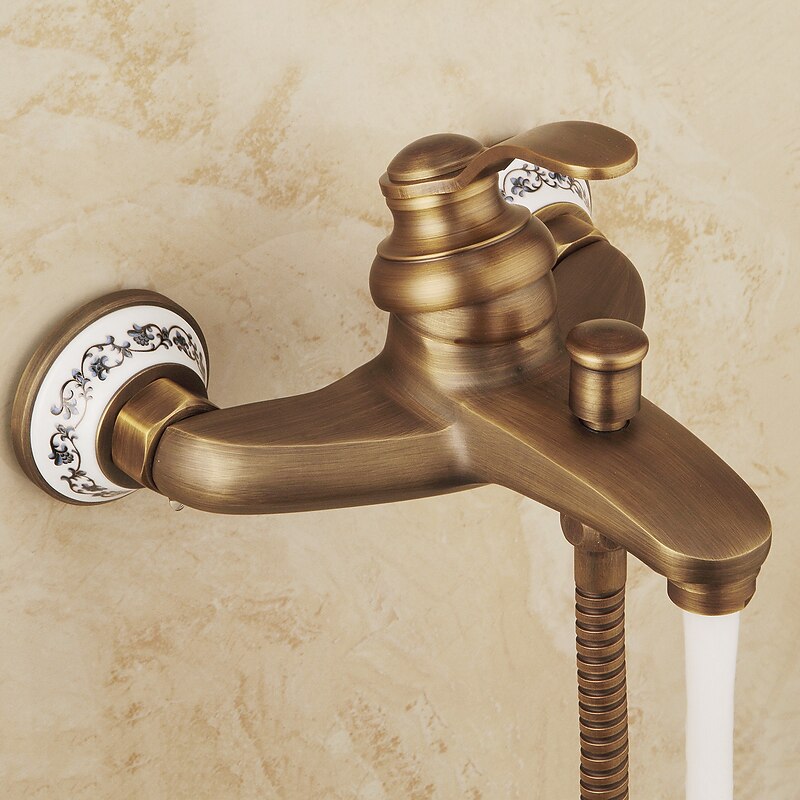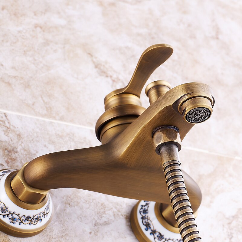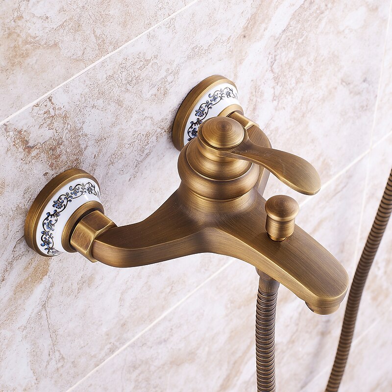 More information about Shower Faucet / Rainfall Shower Head System Set - Handshower Included pullout Vintage Style / Country Antique Brass / Electroplated Mount Outside Ceramic Valve Bath Shower Mixer Taps / Single Handle