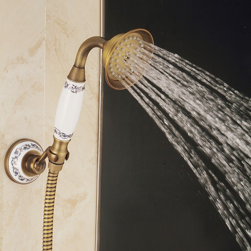 Shower Faucet / Rainfall Shower Head System Set - Handshower Included pullout Vintage Style / Country Antique Brass / Electroplated Mount Outside Ceramic Valve Bath Shower Mixer Taps / Single Handle 6