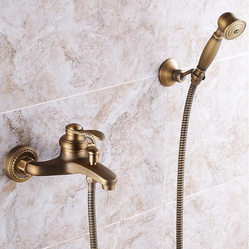 HOT ! Shower Faucet / Rainfall Shower Head System Set - Handshower Included pullout Vintage Style / Country Antique Brass / Electroplated Mount Outside Ceramic Valve Bath Shower Mixer Taps / Single Handle