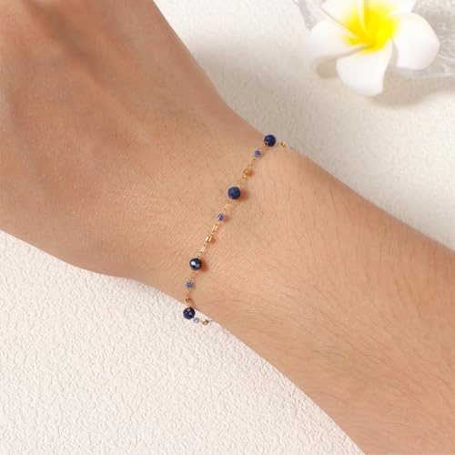 • 【Material】-- Lapis Lazuli bracelet is made of stainless steel chain and beads plated on 18k gold, not easy to rust and tarnish, wear-resistant and durable, not green at all, hypoallergenic, comfortable experience for all day.