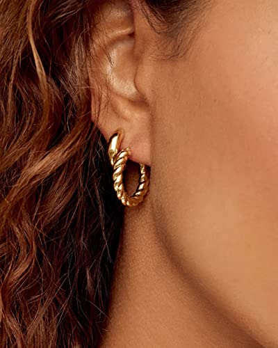 gorjana - Crew Hoops 13/16” - 18k Gold-Plated Brass - Elegant Twisted Design - Stainless Steel Post, Hinge Closure - Lightweight and Versatile - Daily Earring Wear