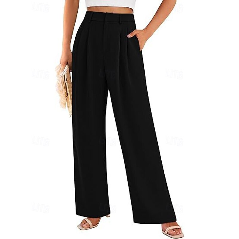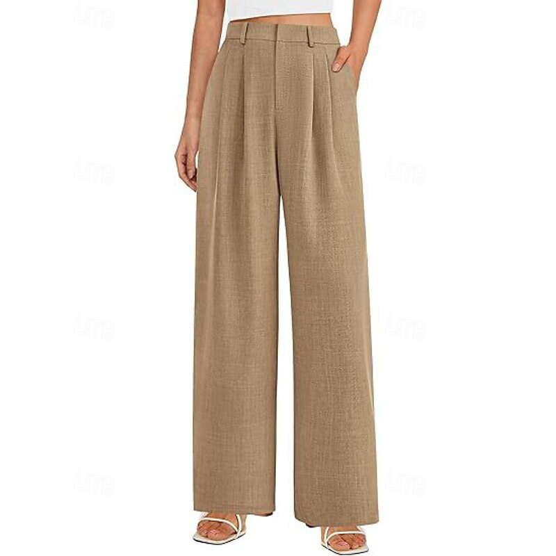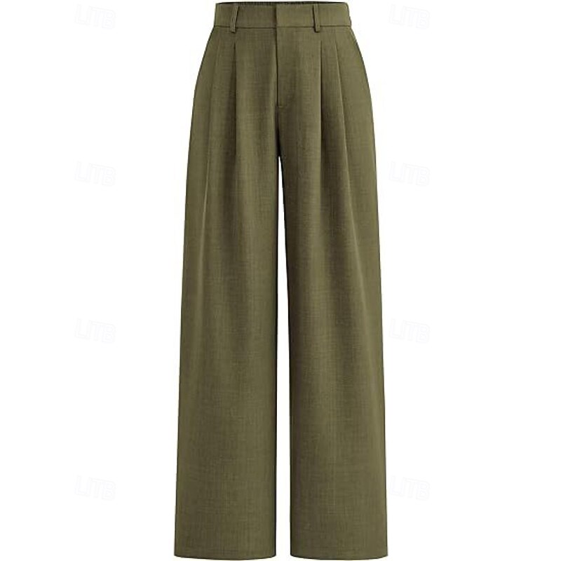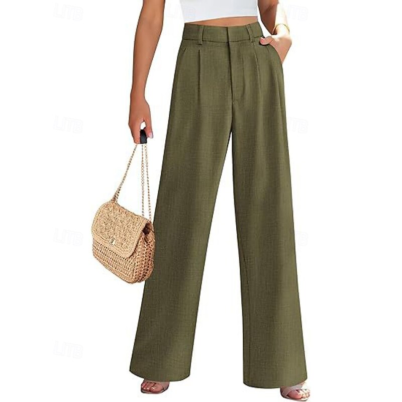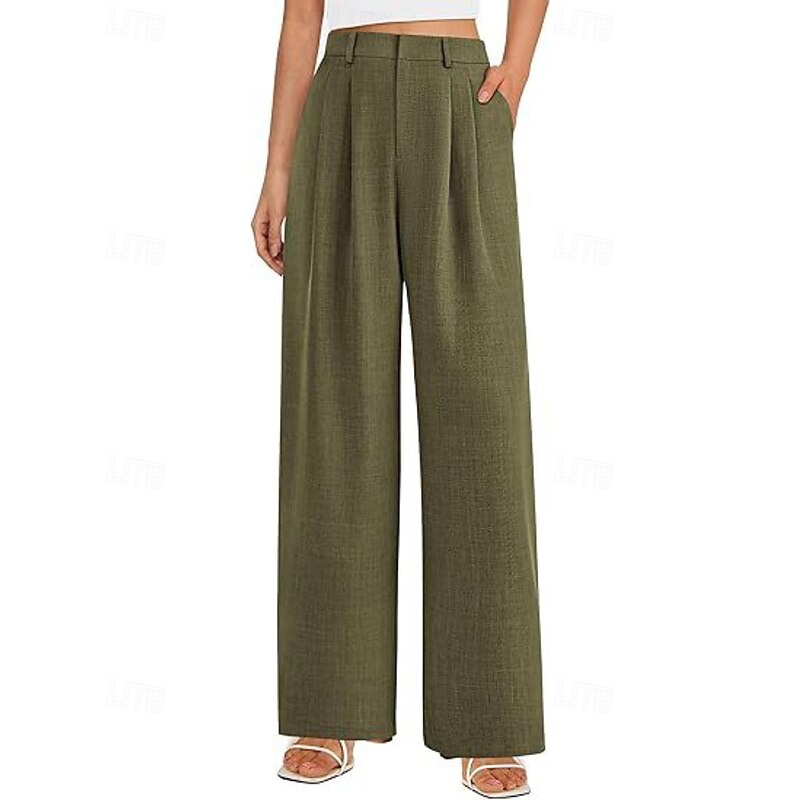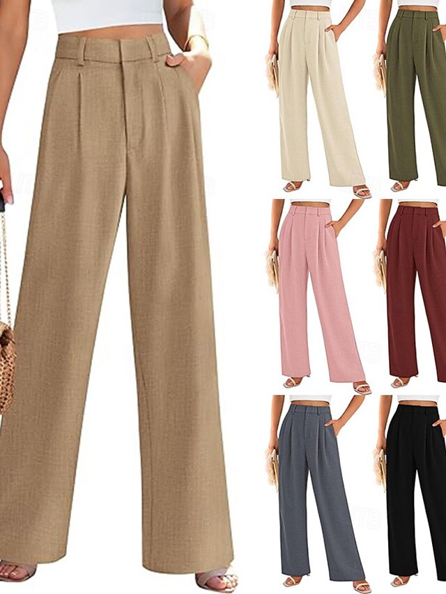 More information about Women's Wide Leg Slacks Streetwear Casual Full Length Natural Plain Pocket Elastic Waist Comfortable Holiday Daily Wear Weekend Grey Black Army Green Khaki Fall Regular Fit
