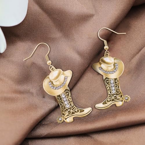 HOT ! RechicGu Western Cowgirl Hat Boots Earrings Enamel Cowboy Hat Sparkly Rhinestone Boot Dangle Earrings Prom Country Concerts Rodeo Cowboy Outfits Jewelry Gift for Women